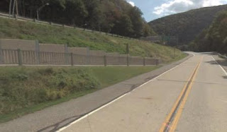 The 300k route enters the NJ side of the park at the Dingman's Ferry bridge, one of the few which riders can ride their bikes while crossing the Delaware River. From Dingman's Ferry, the route heads up to a controle stop at the Hainesville General Store. The route turns south through the park on the NJ side of the park through Flatbrook and Walpack before reaching the big lump of Old Mine Road. It stands as a formidible challenge, but the remainder of the route through the park is quite enjoyable and generally free of vehiclar traffic. The tour of the park ends when riders return to the Appalachian Trail to cross the Delaware River and return to PA. For riders who've never done this, the trail is a pedistrian pathway on the I-80 bridge, shown on the left in the photo.